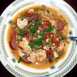 Tantalize your taste buds with a bowl of this tasty gumbo filled with chicken, pork, shrimp and spicy Cajun flavor!